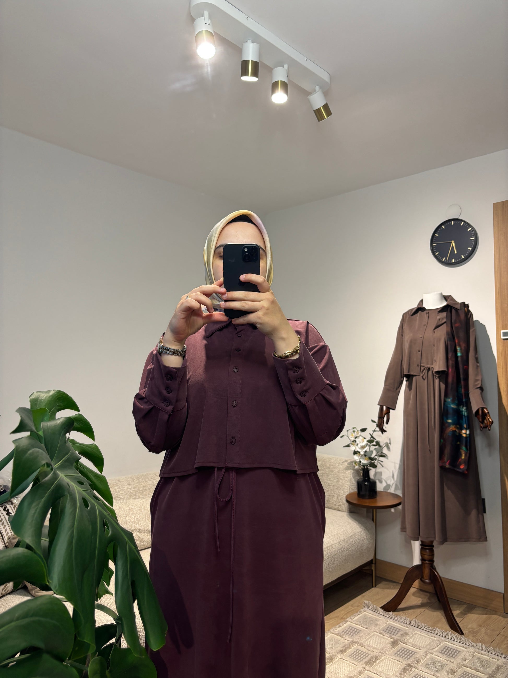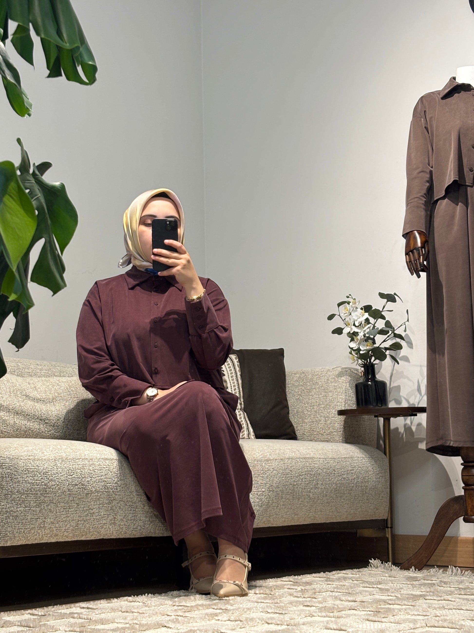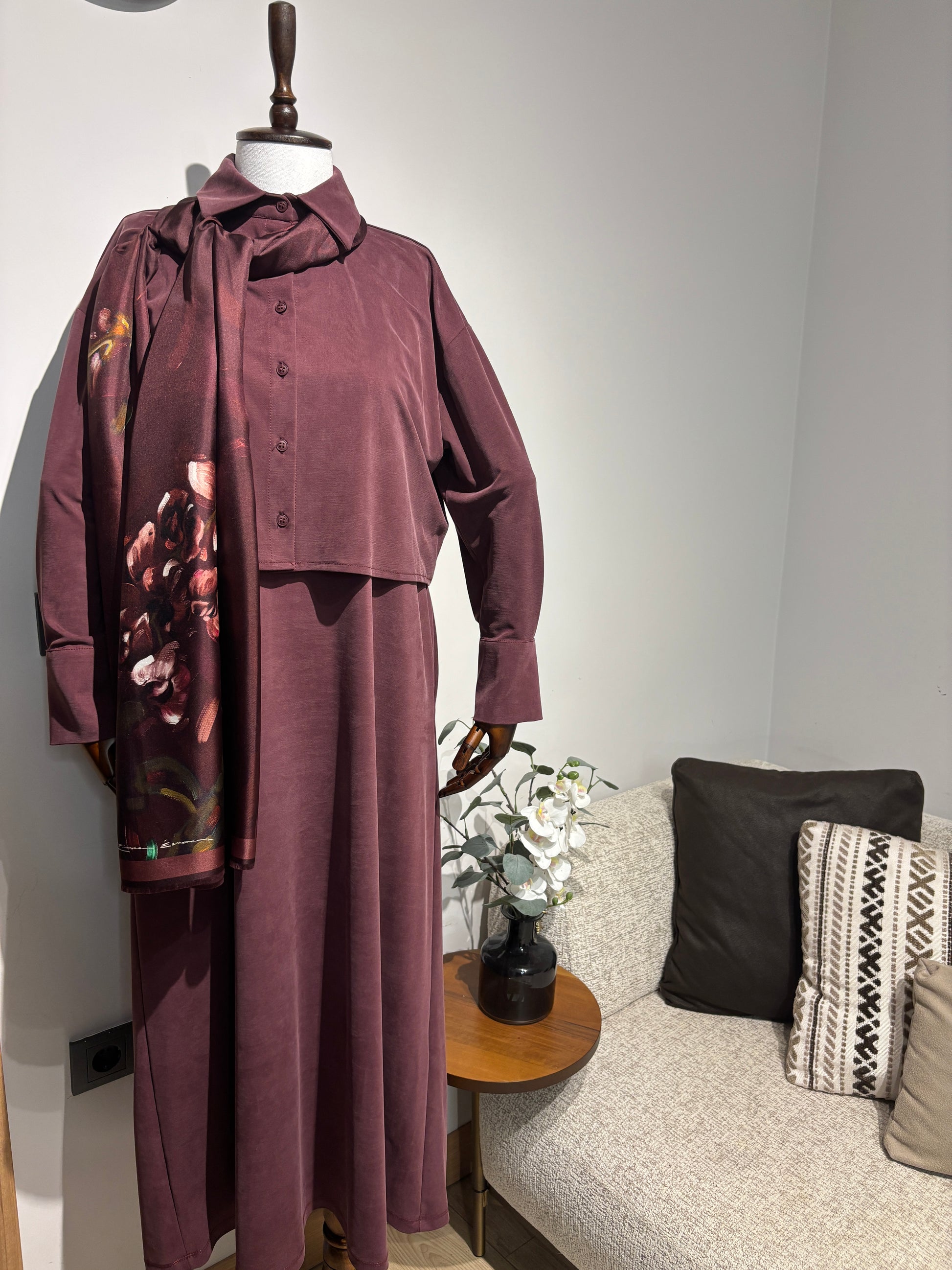 Gömlek tasarımından ilham alan bu elbise, modern çizgisi ve konforlu yapısıyla şıklığı günlük hayata taşır. Rahat kalıbı sayesinde gün boyu konfor sağlarken, ofis ve şehir kombinlerinde zamansız bir stil sunar.
